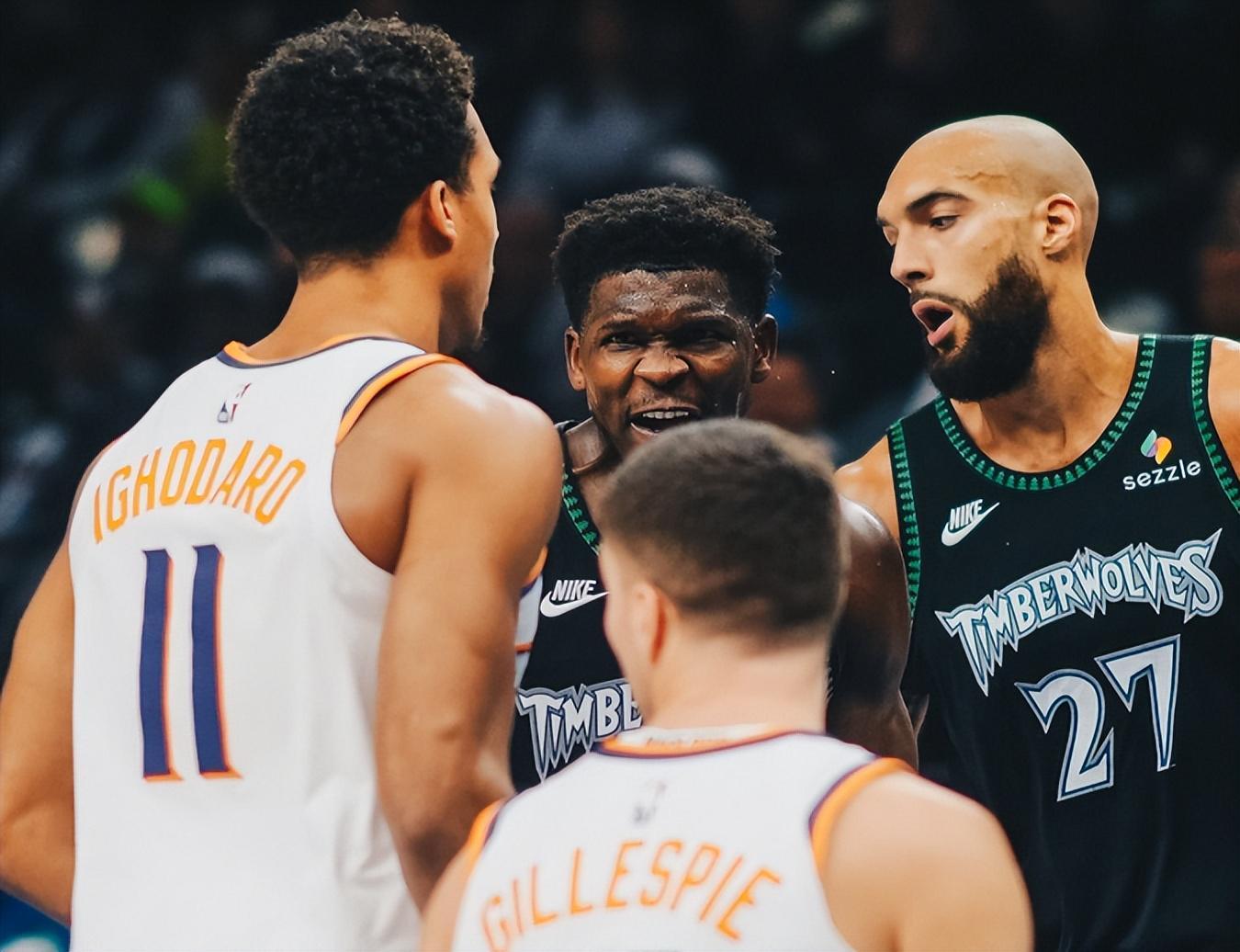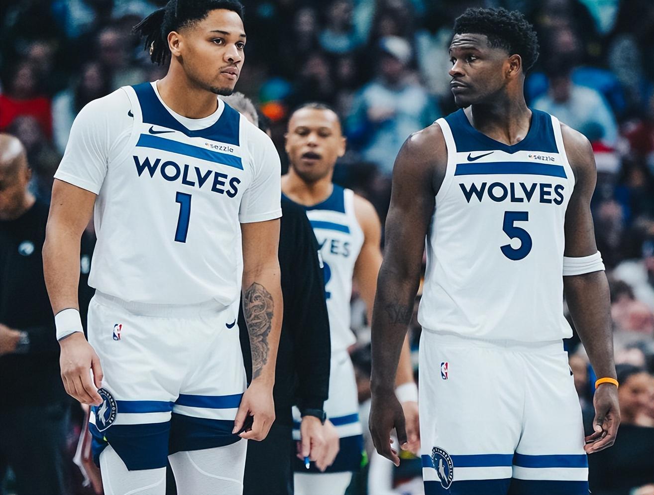 尤其是过去5场比赛,森林狼队苦吞5连败,打强队时唯唯诺诺赢不了,打弱队时重拳出击还是输!比如1月17日打火箭,森林狼队在领先12分的情况下轰然崩盘,5分惜败;1月18日打马刺,森林狼在落后25分之后才睡醒,华子狂轰55分带队将分差追至个位数,还是3分惜败;1月21日打爵士,华子38分对飙乔治(43分),森林狼5分爆冷惜败;1月26日打勇士,森林狼队溃不成军,全队仅得到85分,连续103场比赛得分破百的纪录被勇士终结,遭遇一场26分惨败。